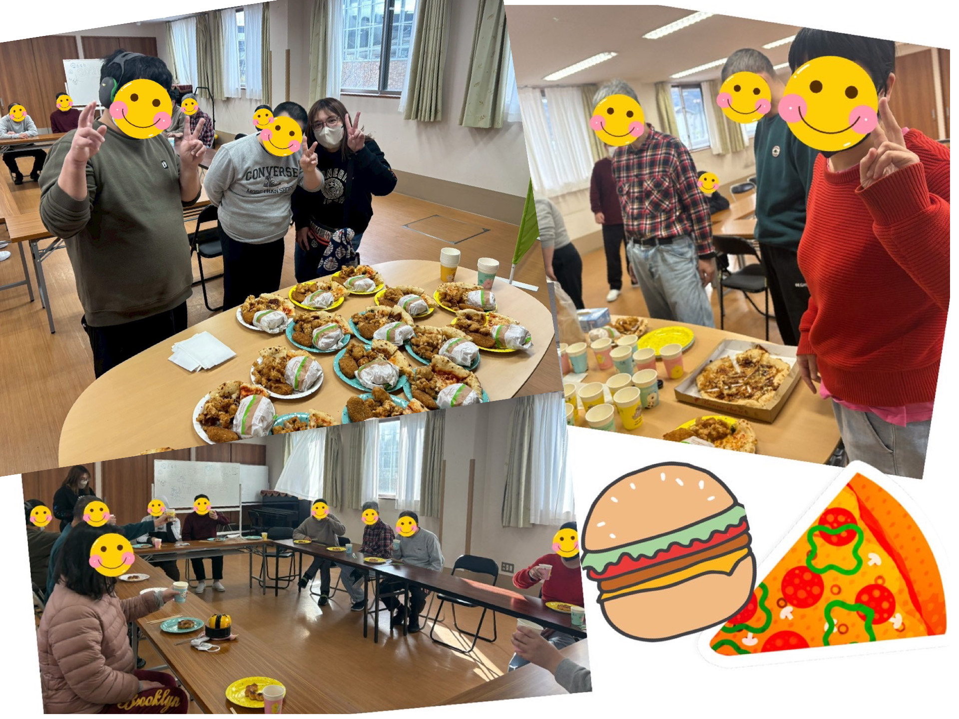 C班はマクドナルドや揚げ物を注文して「揚げ物パーティー」を班室でみんなで食べました🍔