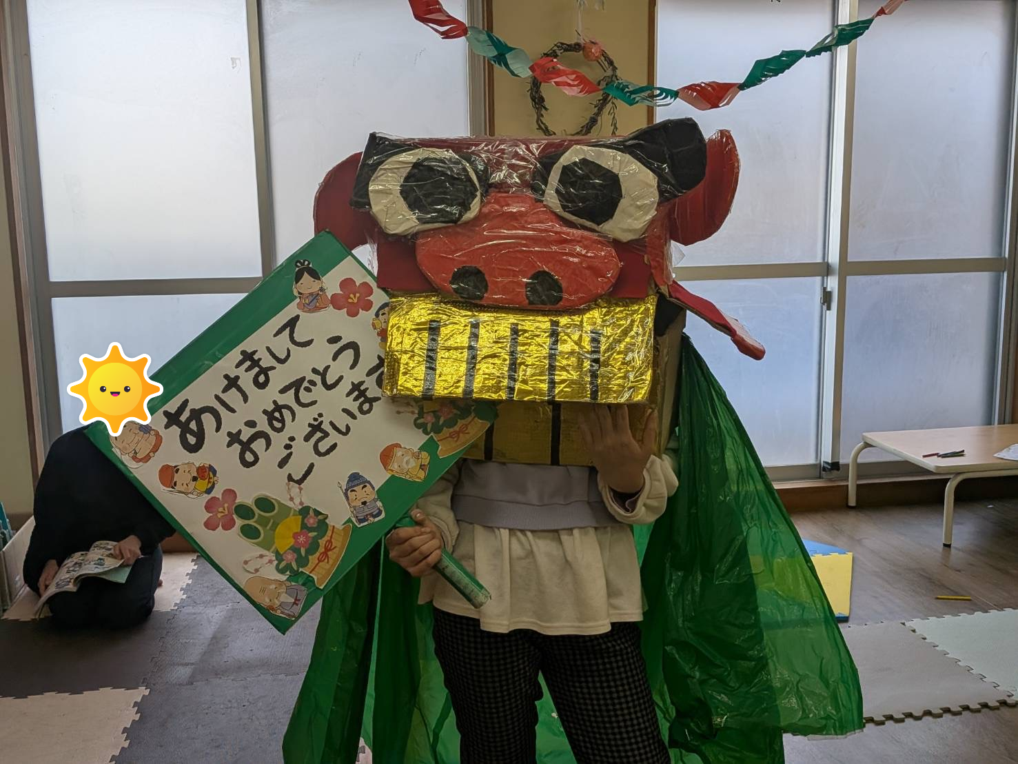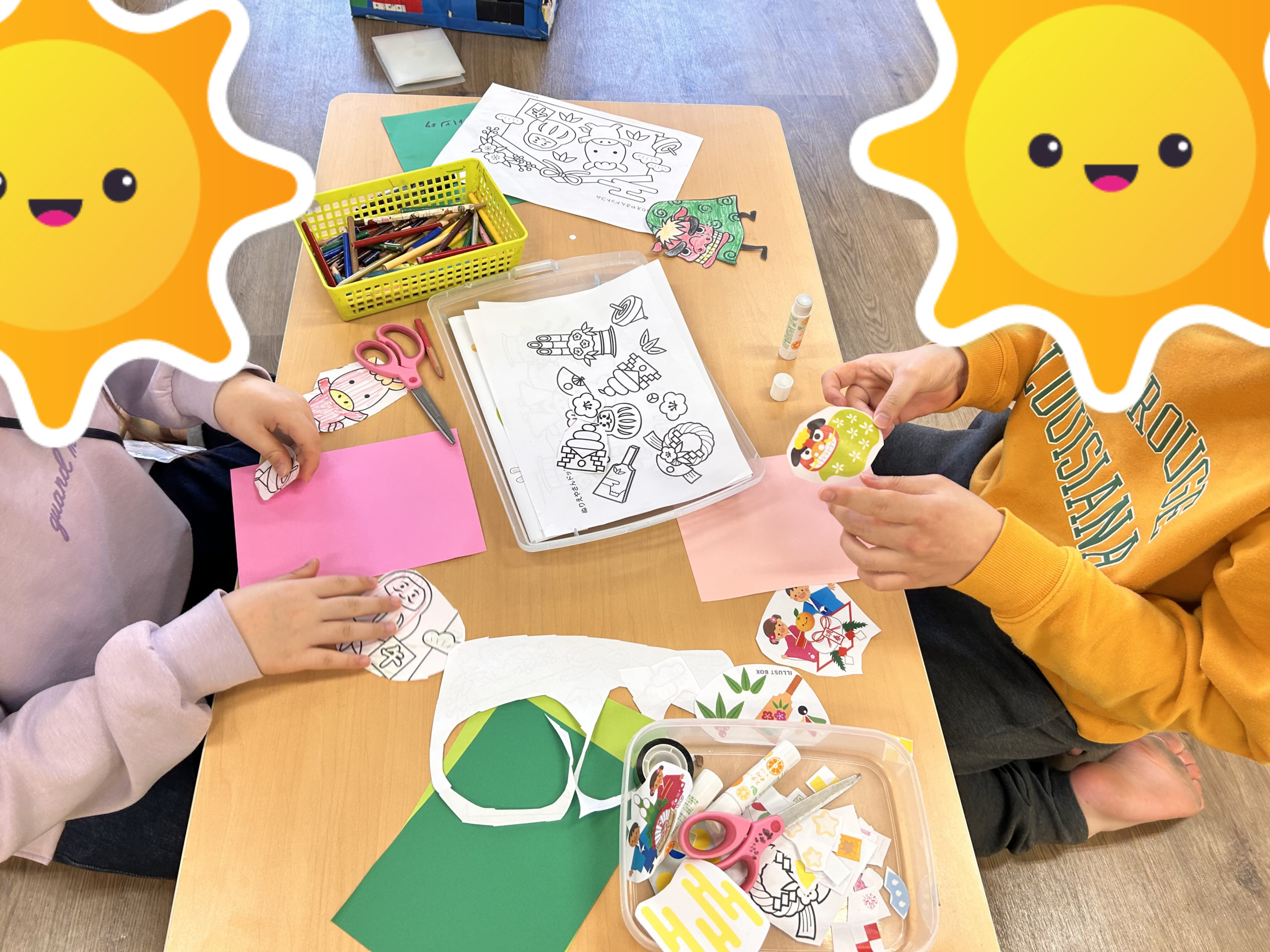 年賀状作りや福笑い、コマ回しなど、お正月ならではの遊びも楽しんでいます。