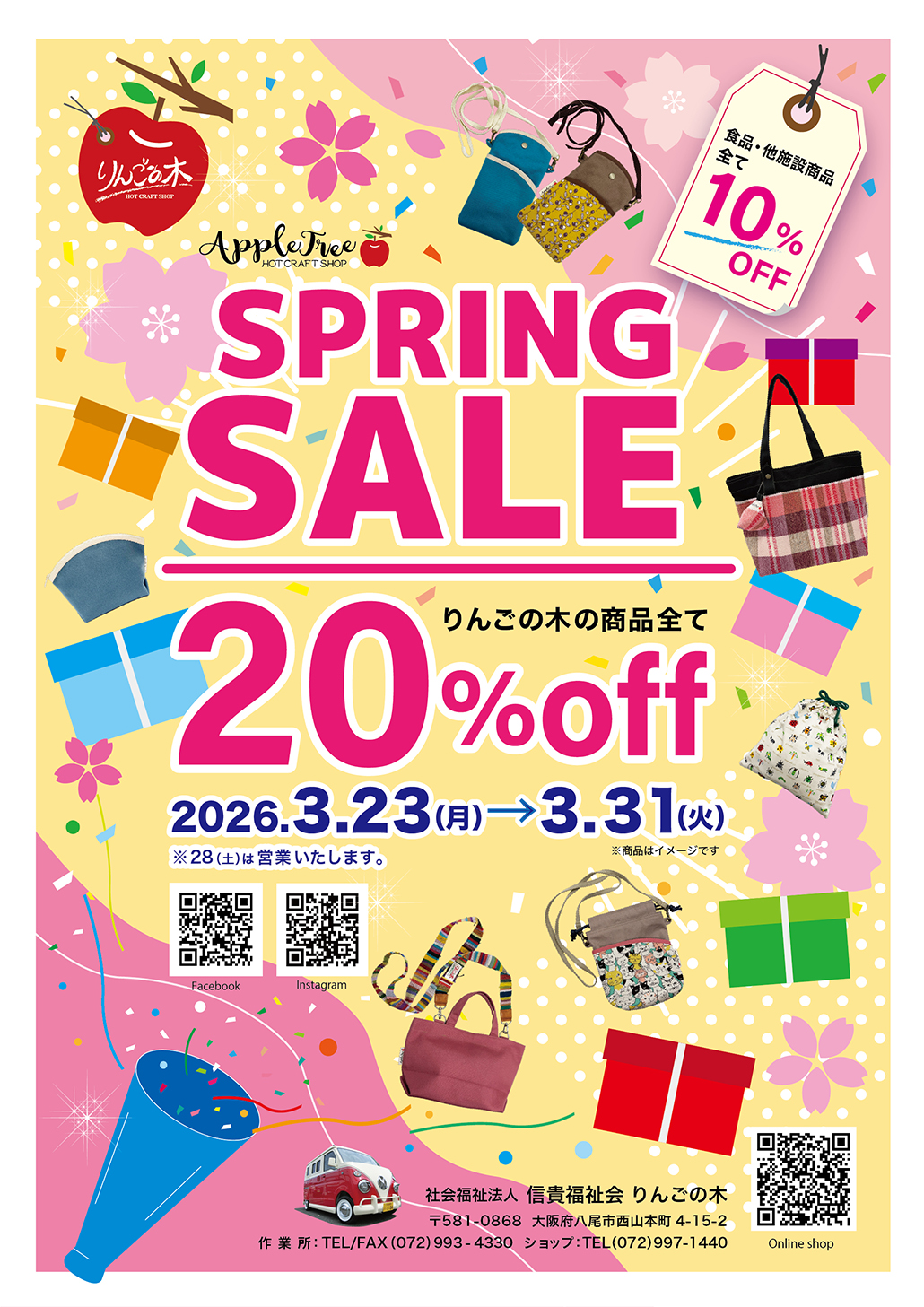 日頃の感謝を込めて、3/23(月)〜3/31(金)りんごの木 1階ショップで「スプリングセールス」を行います。全品10〜20%引き。